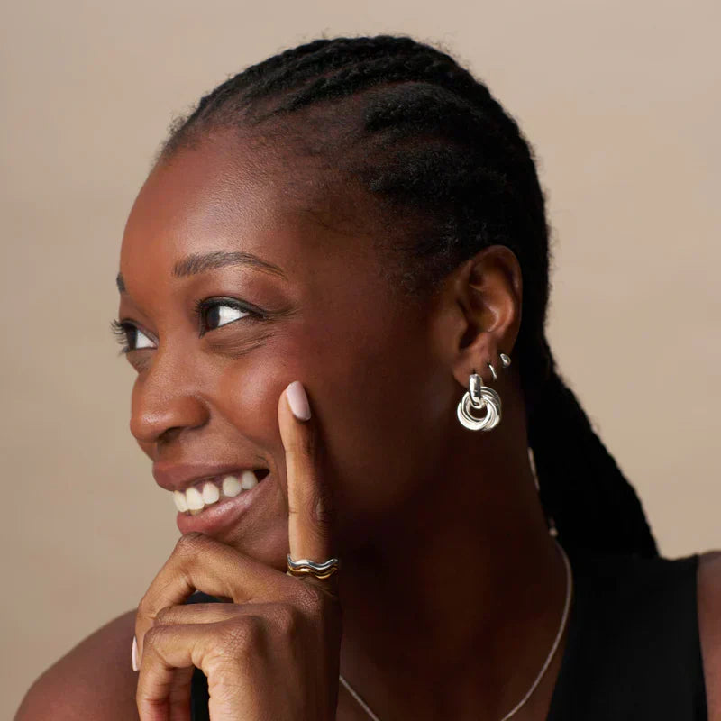 Kudotut Statement korvakorut esittelevät ohuita, päällekkäin asetettuja renkaita. Rohkeat, mutta hienostuneet, ne lisäävät jokaiseen asuun modernin kosketuksen.
