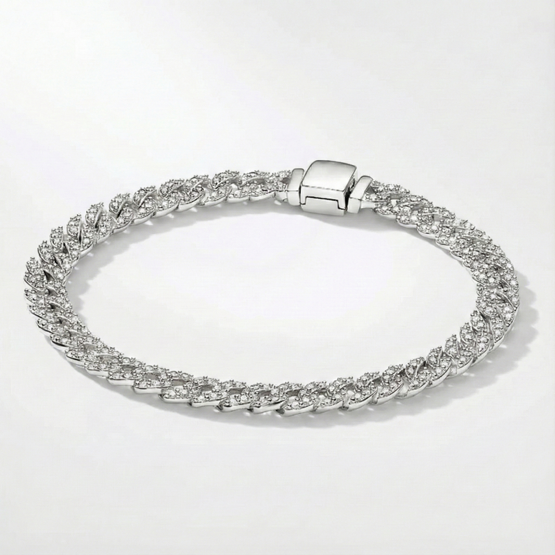 Moissanite kubanikee yhdistää elegantin kiillon moissanite-kivien säihkeään loisteeseen. Vahva, mutta hienostunut, tämä koru yhdistää harmonisesti voiman ja eleganssin.