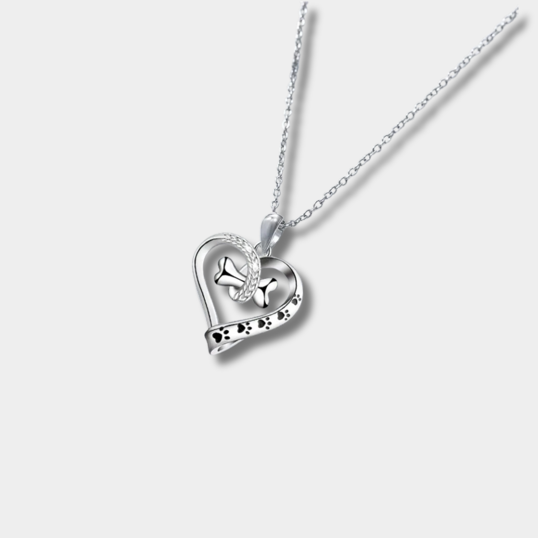 Tämä viehättävä kaksiosainen korusarja vangitsee penturakkauden puhtaan ilon. Se koostuu hienosta kaulaketjusta ja yhteensopivista korvakoruista, joissa jokainen kappale esittää sydämellisiä symboleja: jalanjälki, sydän ja leikkisä luu – joka merkitsee erottamatonta sidettä karvaisen parhaan ystäväsi kanssa.