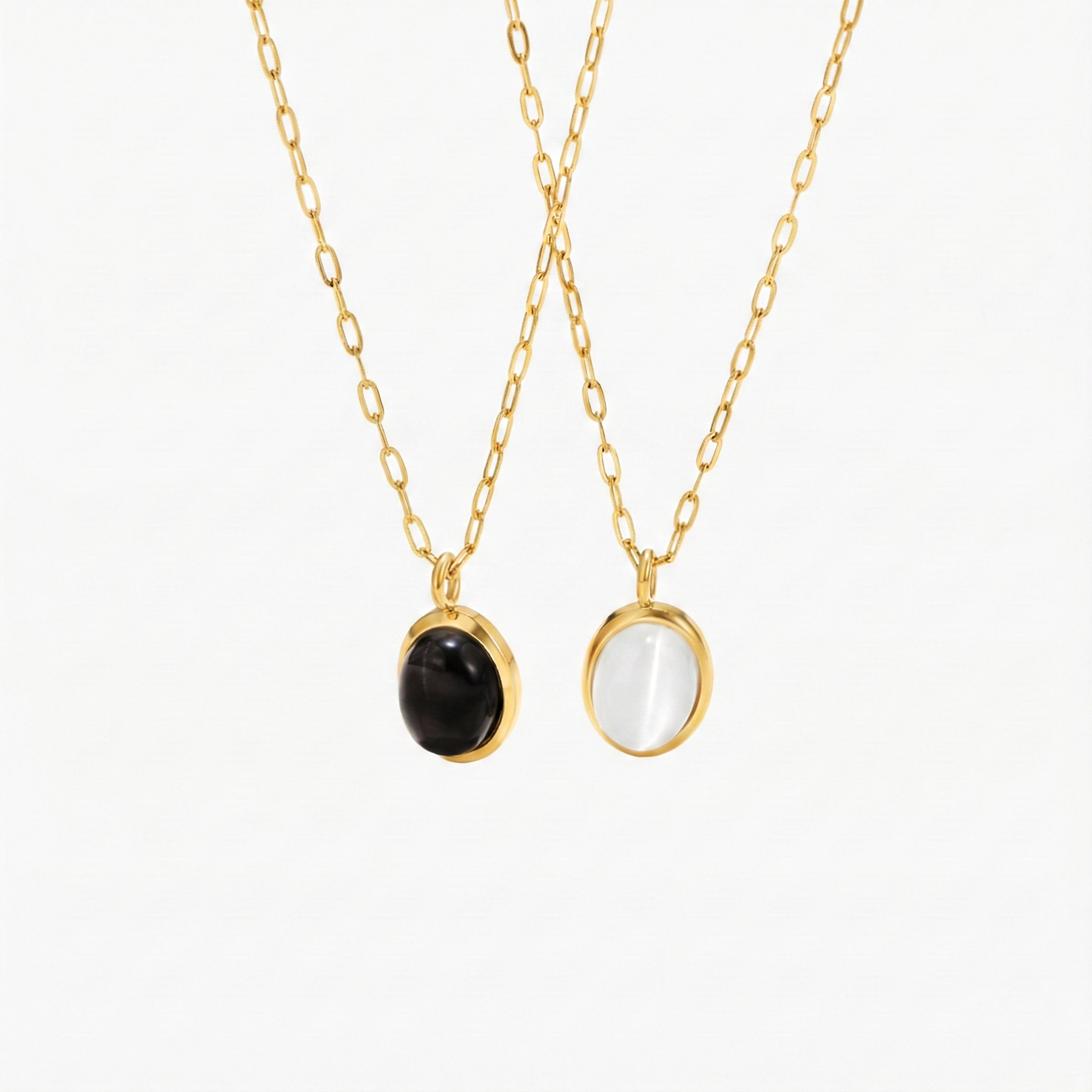 Veronika – Kulta kaulaketju mustilla yksityiskohdilla.